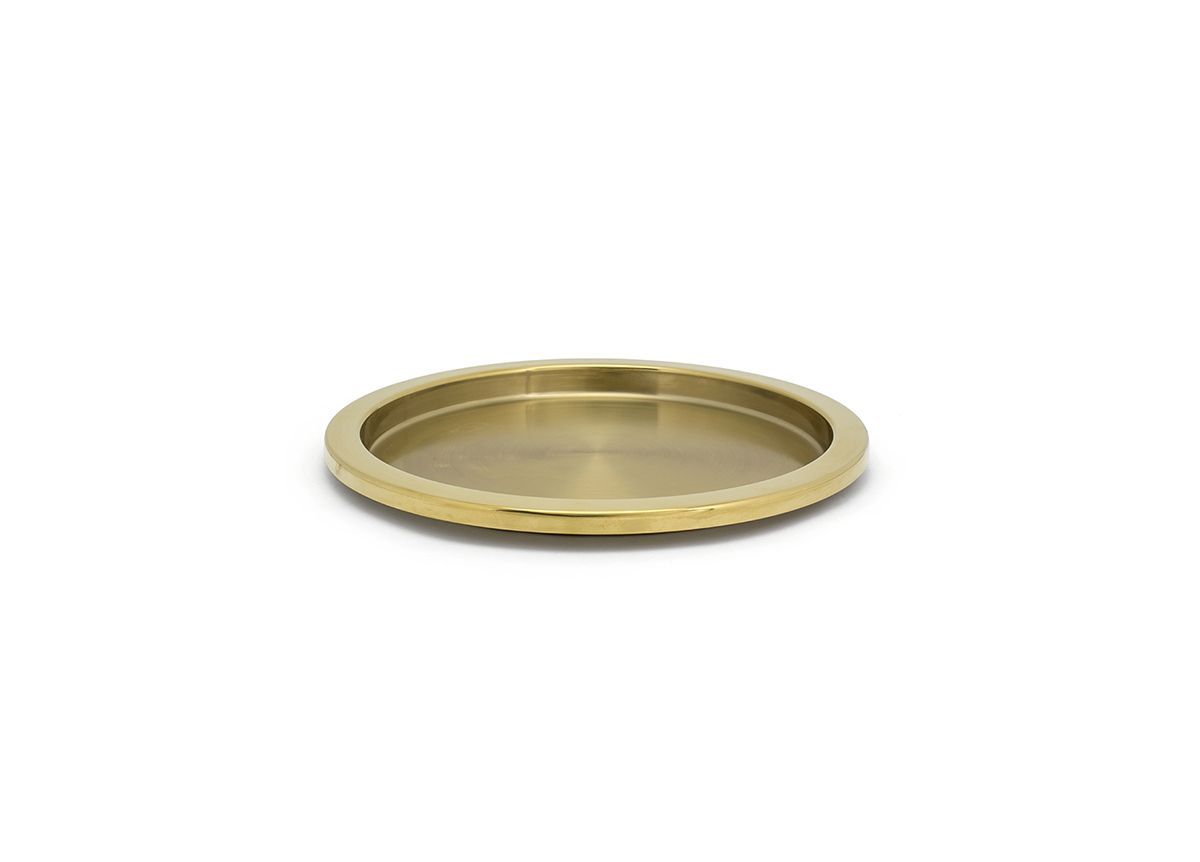 Elegante bandeja redonda de acero inoxidable para dar un toque de distinción a la habitación.