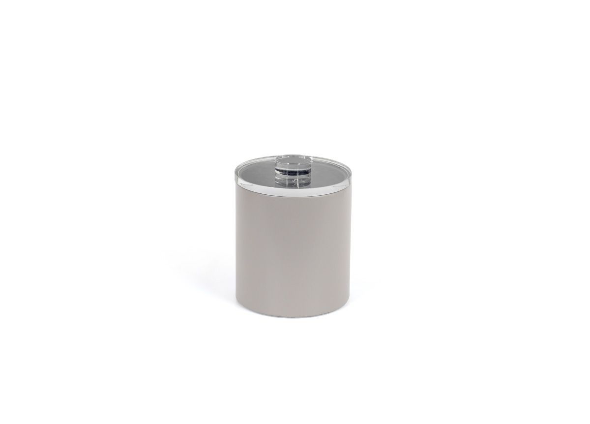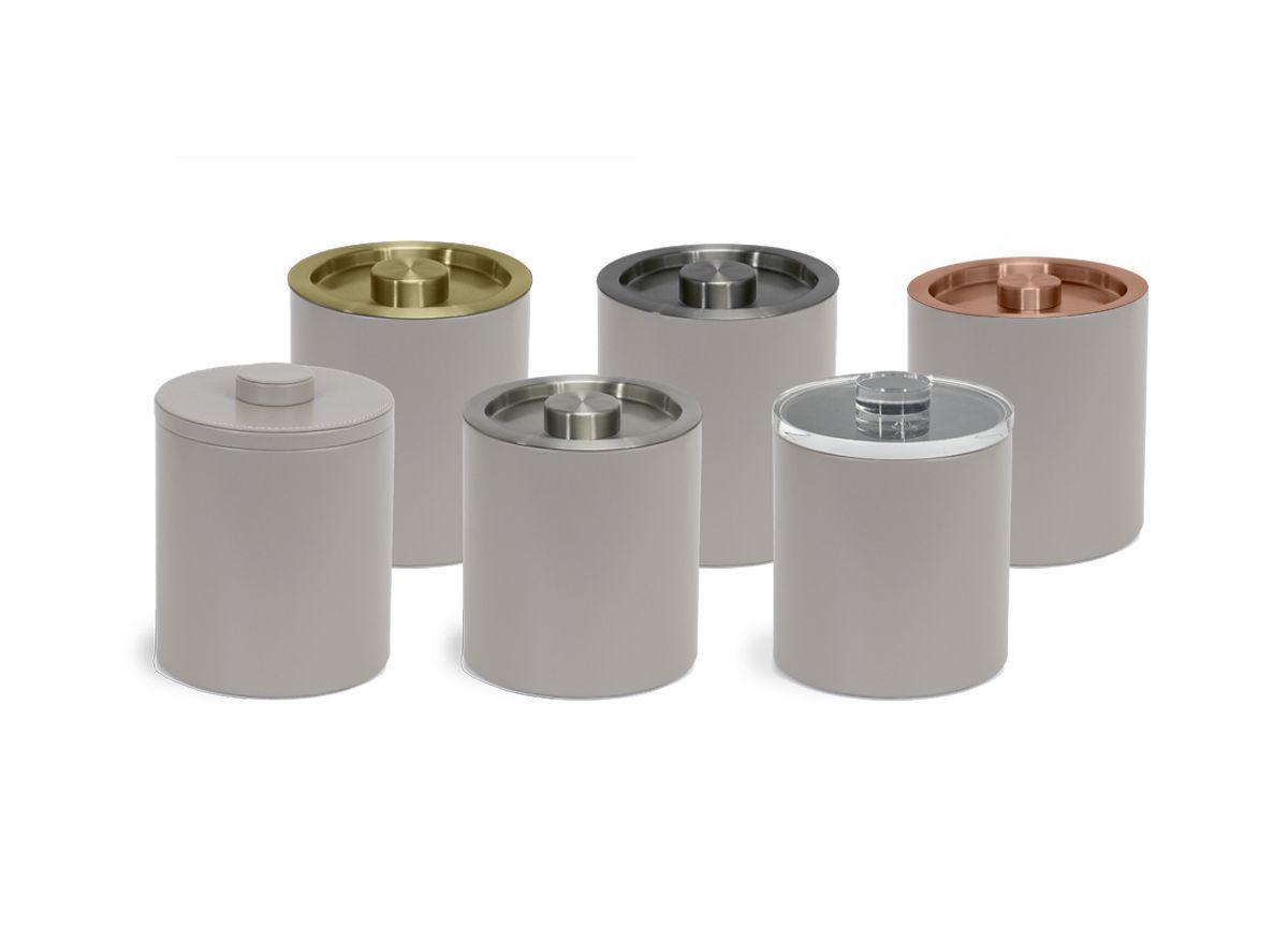 Elegante cubitera de cuero piedra con tapa acrílica de colores.