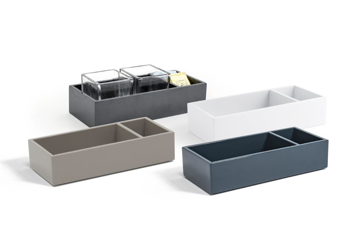 El porta accesorios tiene un elegante acabado de resina de alto brillo.