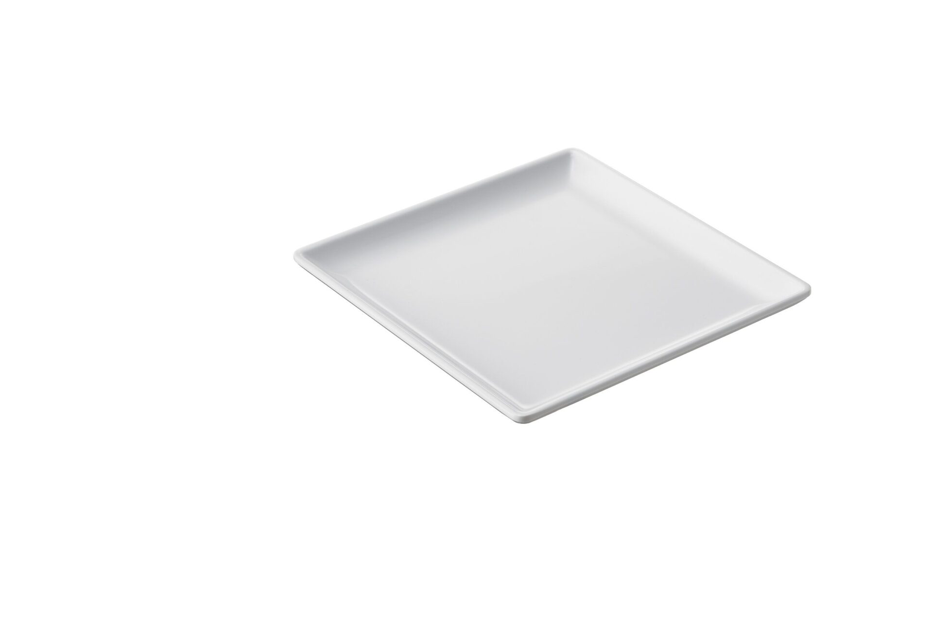 Bandeja cuadrada de melamina blanca. Resientes a golpes,caidas y roturas.La melamina es ligera.Ideal para uso diario,terrazas y eventos.