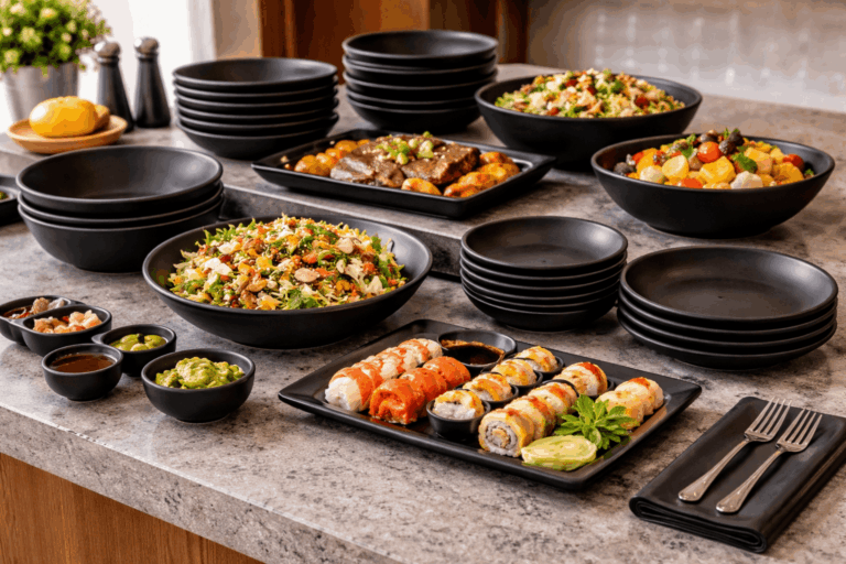 Vajilla de Melamina Negra Profesional para Buffet y Hostelería