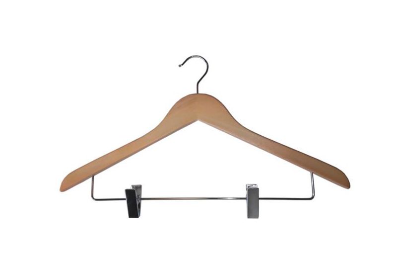 Añade funcionalidad y estilo a tu guardarropa con esta percha de madera de 45 cm de ancho y 1,3 cm de grosor, con acabado barnizado que resalta la textura natural de la madera. Equipada con pinzas metálicas resistentes, es ideal para colgar faldas, pantalones o prendas delicadas sin deformarlas. Su diseño robusto y elegante la hace perfecta tanto para el hogar como para tiendas de ropa.